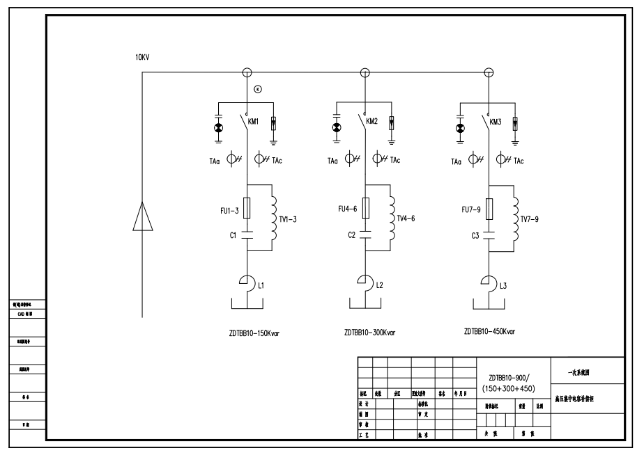 方案3:900kvar=100kvar+200kvar+300kvar+300kvar,